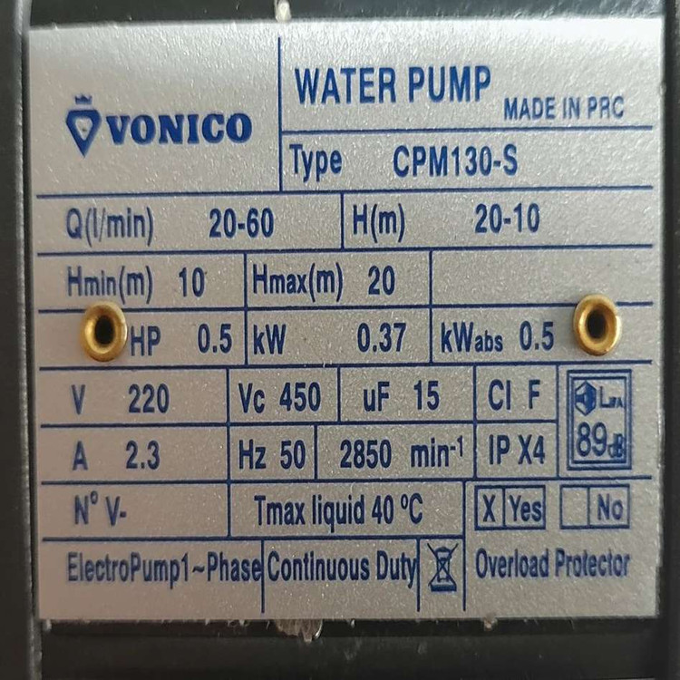 پمپ آب نیم اسب بخار ونیکو مدل بشقابی CPM-100p